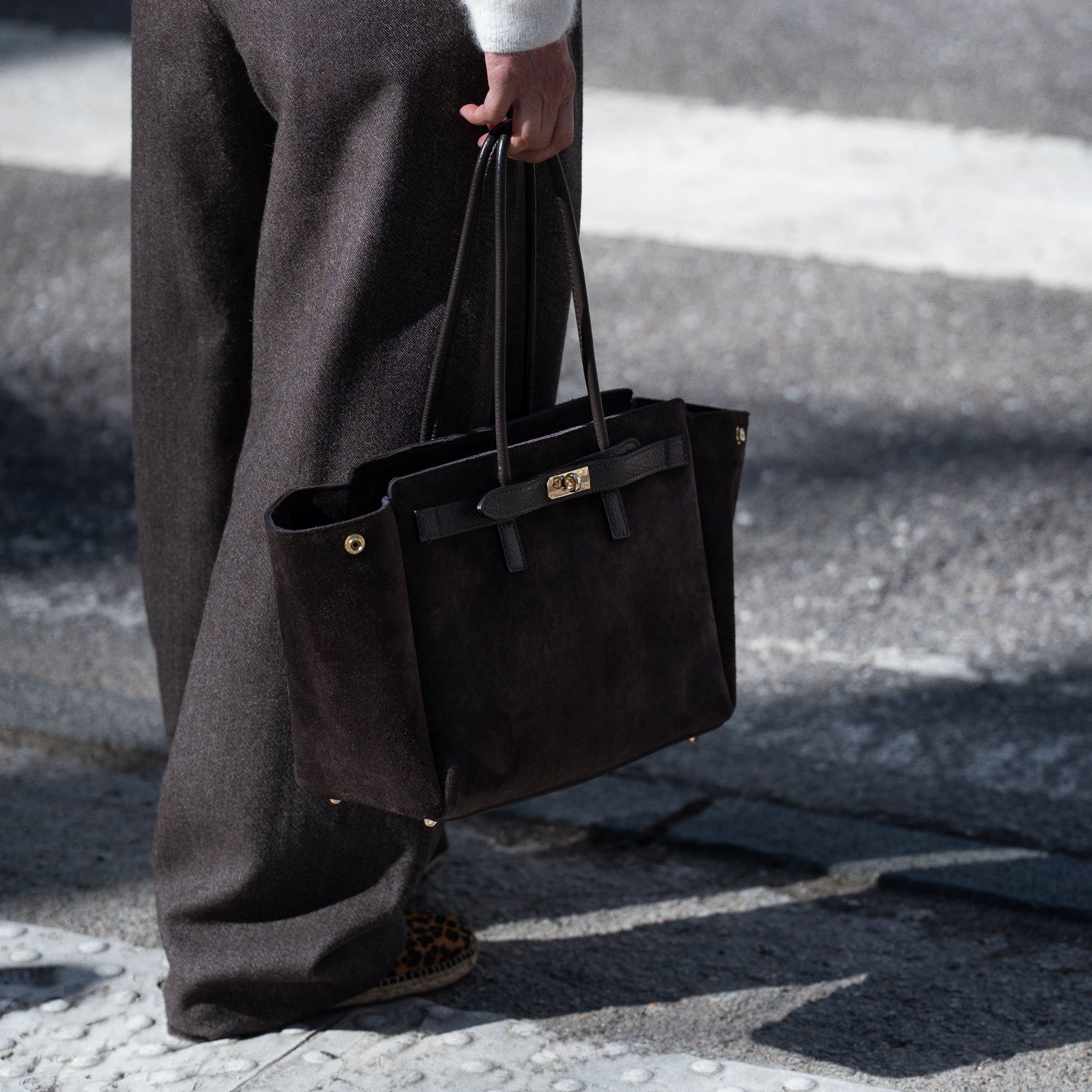 Inspirée par les notes profondes et chaleureuses de l’oud, le modèle Oud dévoile un grand sac cabas en daim, au toucher velouté et aux teintes naturelles.